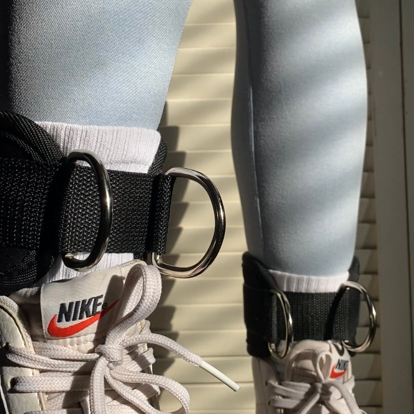 Easily strap them to your ankle and attach to the cable machine. Includes two metal rings to ensure a secure attachment so you can perform your workouts safely.